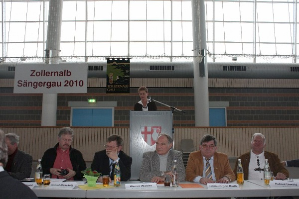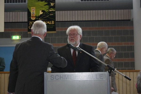 Ute Wannenmacher (Schriftführerin des Gaus) und Detlef Ahlfänger (2. Vorsitzender des Gaus) im Gespräch Eine kleine Abordnung des Männergesangvereins war auch dabei Detlef Ahlfänger bei einer seiner vielen Ansprachen. Als 2. Vorsitzender des Gaus und 1. Vorsitzender des MGV hat er viel zu sagen Ehrung für unseren 1. Vorsitzenden, Herrn Detlef Ahlfänger, mit der Gau-Ehrennadel in Gold, in Anerkennung besonderer Verdienste um den Chorgesang im Zollernalb-Sängergau. Herzlichen Glückwunsch! Christoph Gorny gratuliert Detlef Ahlfänger zu seiner Ehrennadel in Gold Urkunde von Detlef Ahlfänger. Gau-Ehrennadel in Gold!